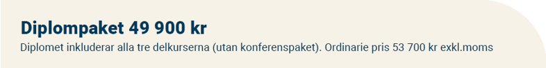 Denna kurs ingår i vårt diplomprogram Diplomerad ledare. Utvecklas som chef och blir en bättre ledare med ett 8 dagars ledarskapsprogram fördelat 3+3+2 dagar. Ladda ner information om diplomet